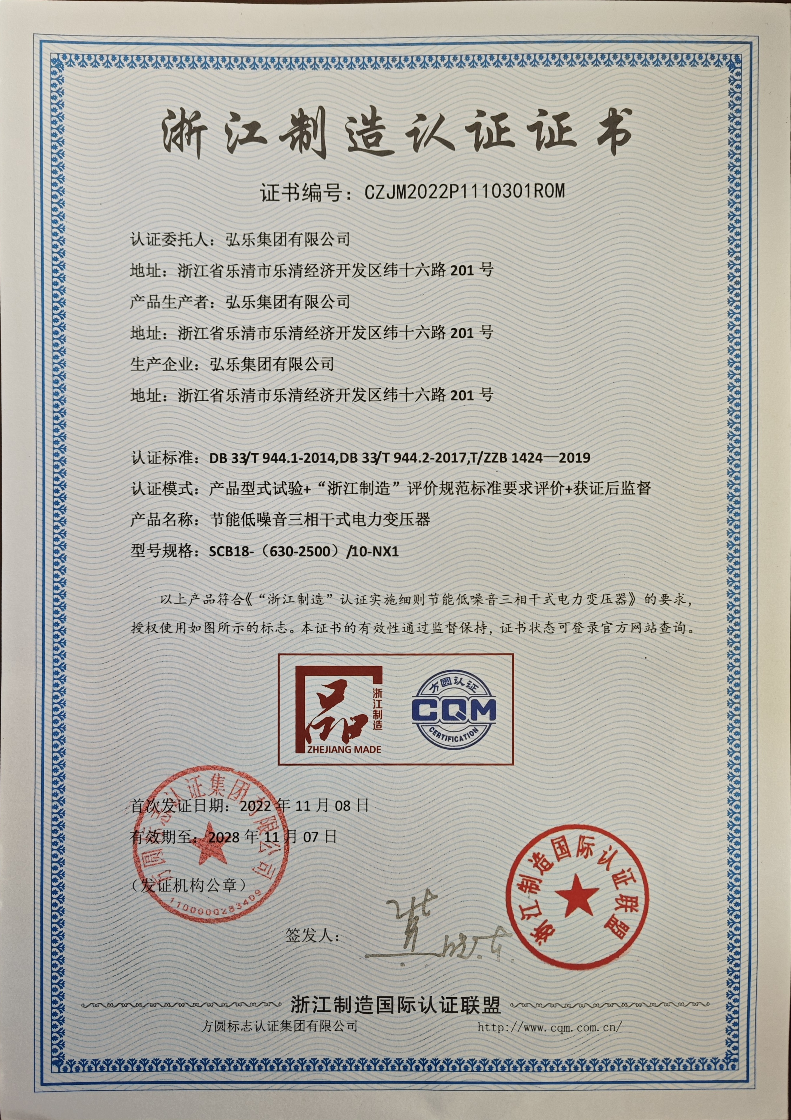 浙江制造认证证书